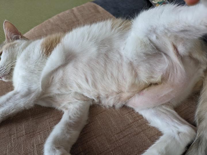 一週間ほどだが明らかに舐める頻度が減って効果が感じられる。