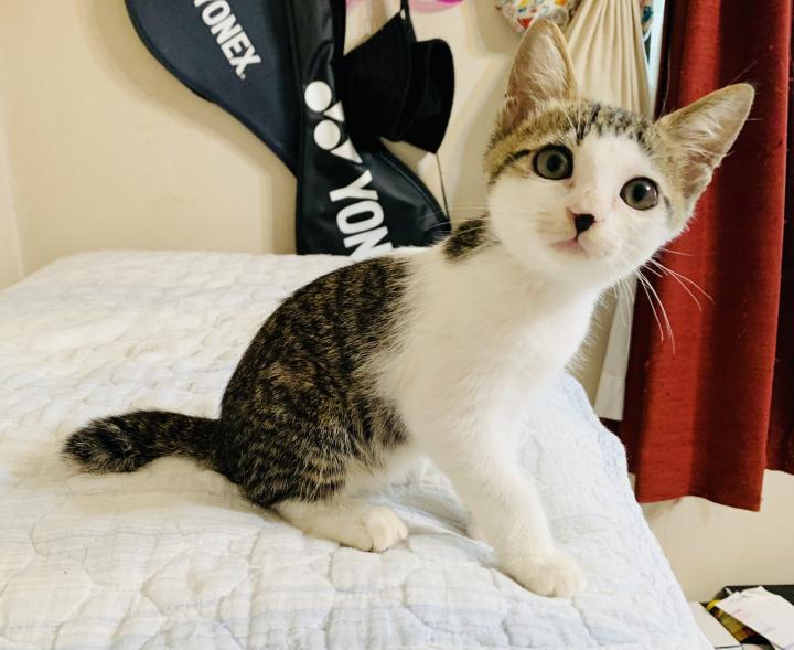 そして、1番の新入り。よっしー君。キジ白。2ヶ月。人も猫も大好き。やんちゃで元気です。譲渡会で最初から人気者💕