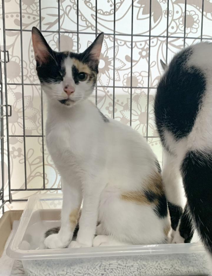 おかかおにぎりの三毛と白黒の男女コンビ4ヶ月🐈🐈⬛なぜかお声がかからない不思議現象で、着々と大きくなっています。