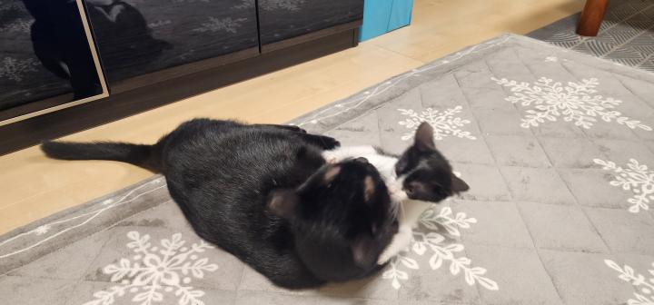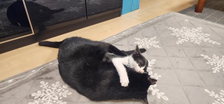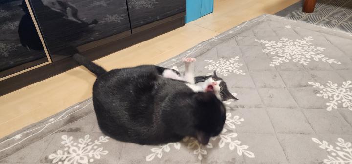 仲良くなった先住猫の零(れお)に勝負を挑んだ