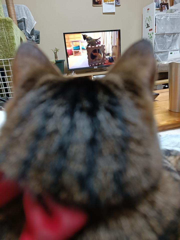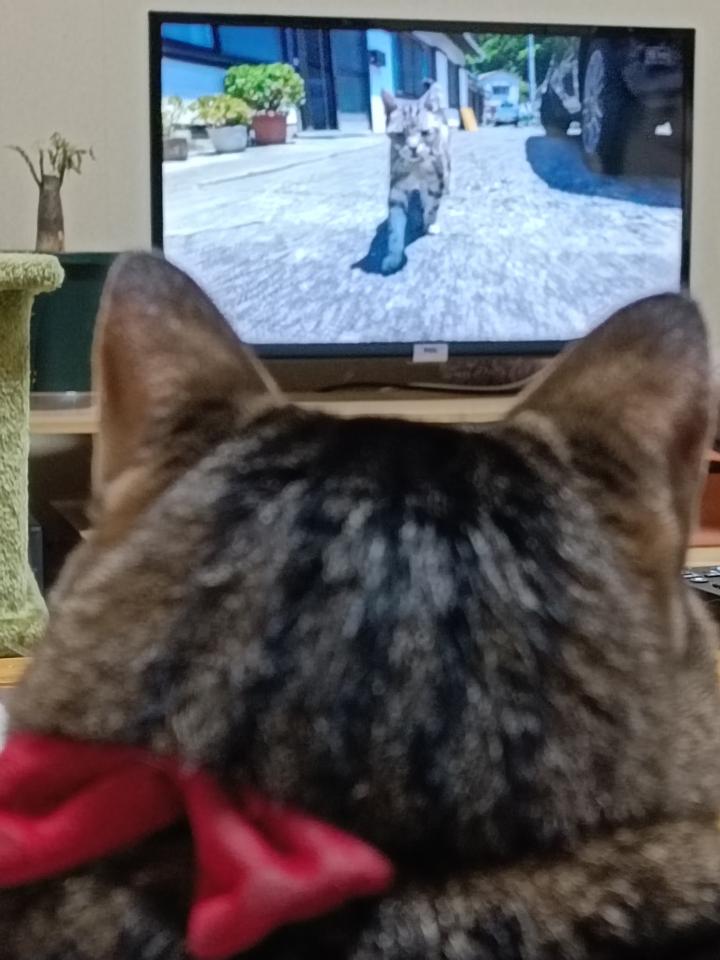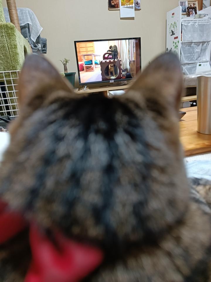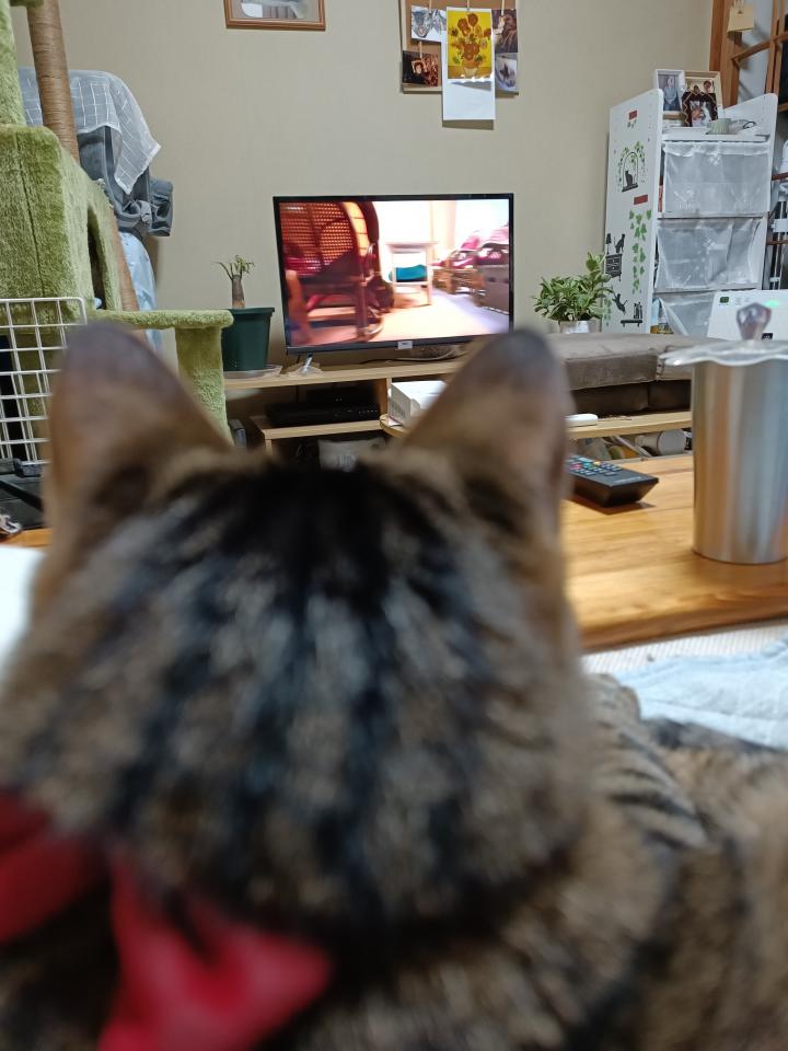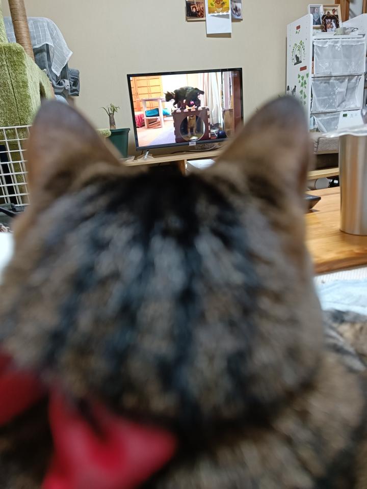 可愛い後頭部が可愛い猫さんの番組に見入ってます