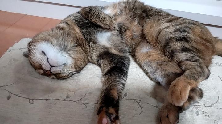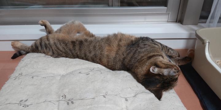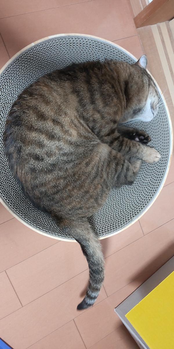 そんなアホな話で終わるのは何なので、キキさんの寝姿で終わります。猫壱のバリバリ導入しましたが、削りにくいのか時々ふて寝で寝転がっております。
