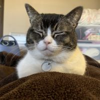 やまと君。キジ白。1歳。隠れるのが好き。撫でられるのも好き❤️