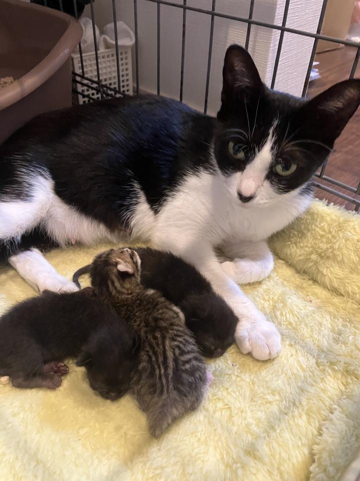 1年前に譲渡会で 保護猫2匹、保護犬1匹を譲っていただき 生活しています^_^ 23年8月に懐っこい ハチワレのメス猫ちゃんを保護 お腹が張ってる気がすると思っていたら 先日3匹の赤ちゃん...