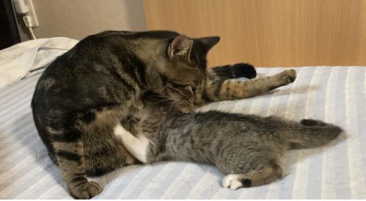 同じく保護して里親募集してる男の子に懐いておっぱい吸うようになりましたꉂ🤣w𐤔
