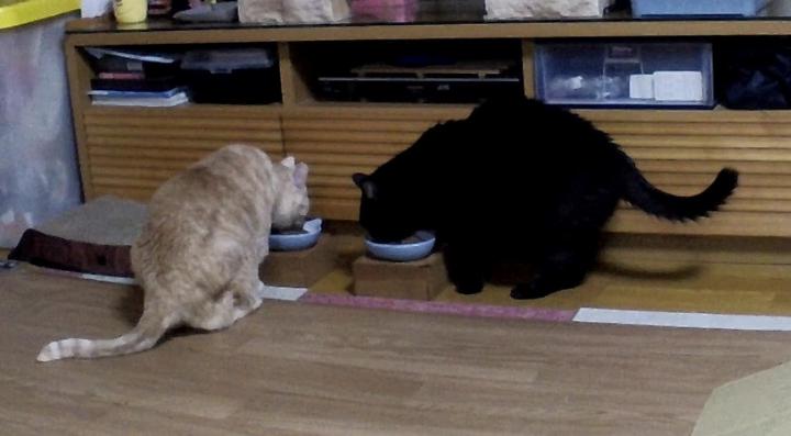 お家では、お皿にご飯を入れるなり、食べだすデッカイさん達コンビ。