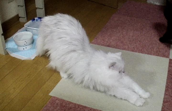 私が近付いたら逃げたけど、白山君用のご飯を用意している間、じっと見ている…。