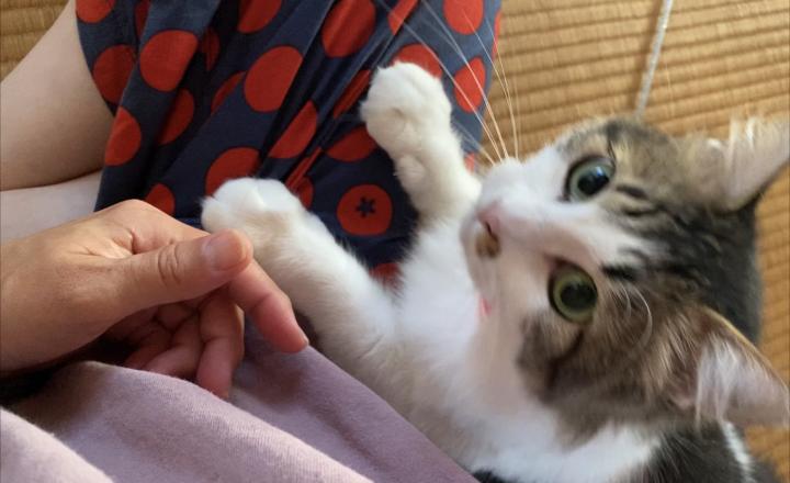 ずっと爪切ってないので手を乗せてくれるのは嬉しいけど痛い…