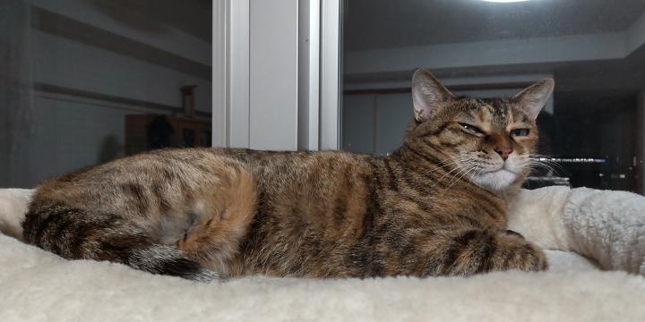 で、流石に人間のクッションにばかり行かれても困るので、キャットタワーを窓際へ移動させました。残暑は続いてますが、流石に真夏の暑さほどではないので、よく寛いでおられます。