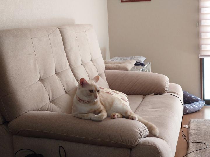 ずっとソファの下やベッドの下で隠れて過ごしていたのが最近では我々の前に出てきてくれるようになり嬉しいです🍵
