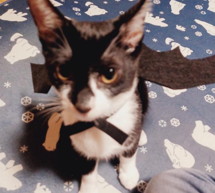 今日はネットで購入した、コウモリのようなコスチュームをつけて見ました(*´︶`*)
