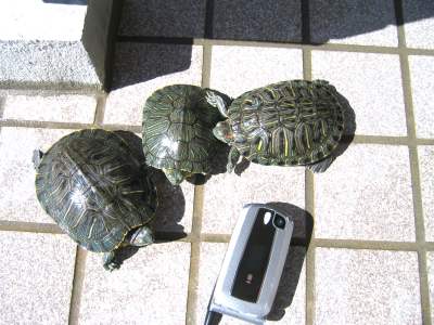 亀。携帯は大きさ比較のためー。