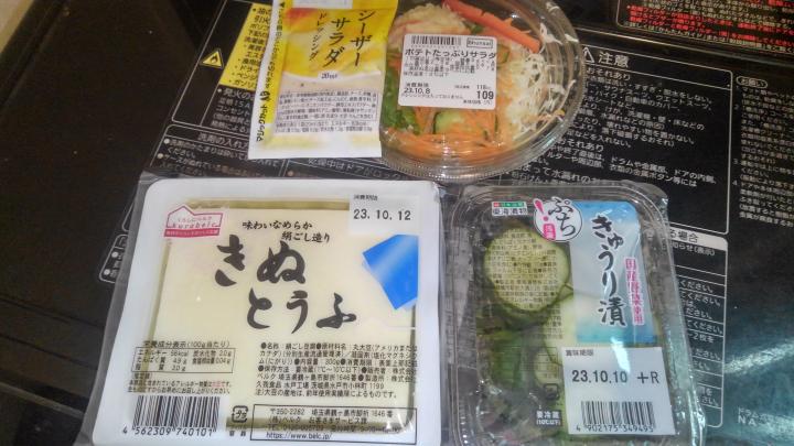 ポテサラ入りミニサラダ(シーザータイプドレッシング)・きゅうり漬物・きぬ豆腐