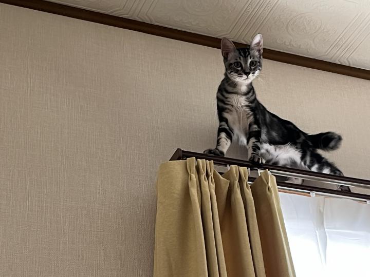 カーテンレールの上に乗っちゃった。(ウイくん)