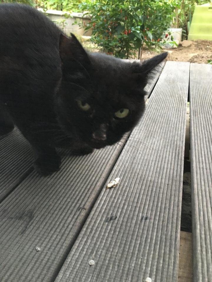 お世話していた野良猫チャムが亡くなった後、すぐに新しい猫が来ました。