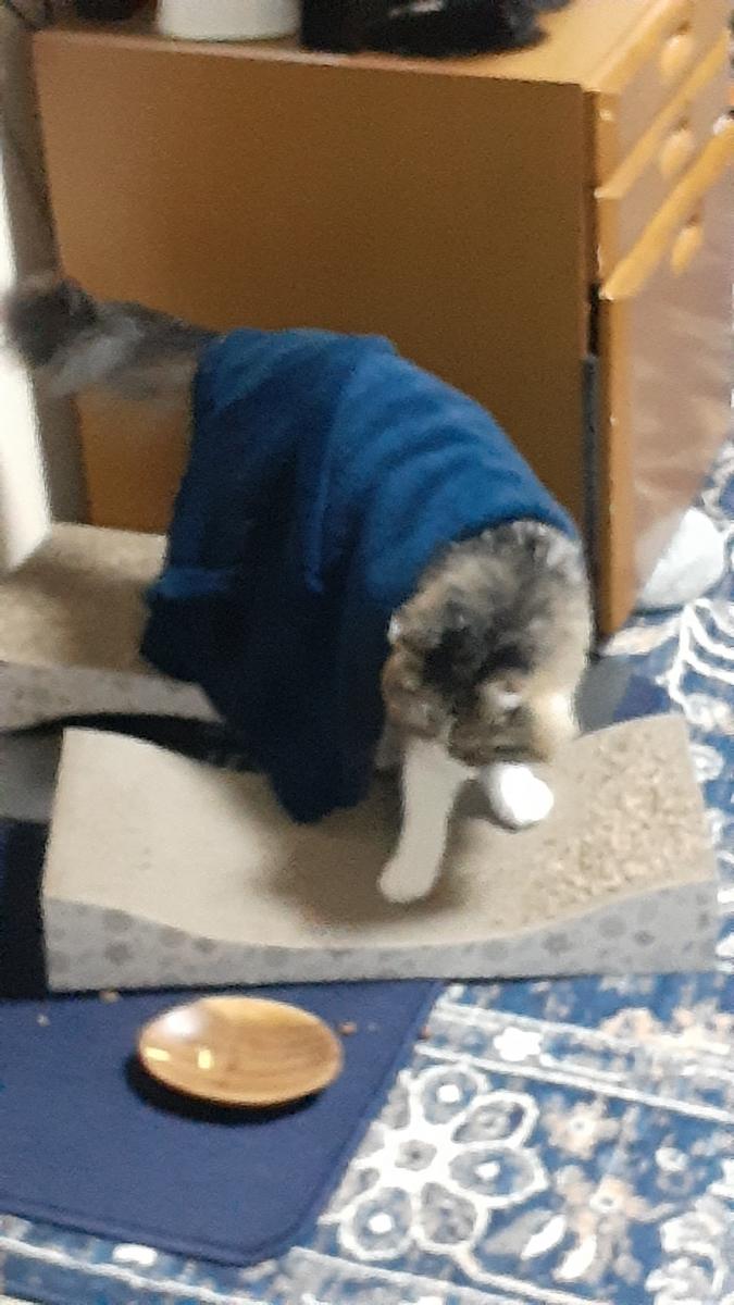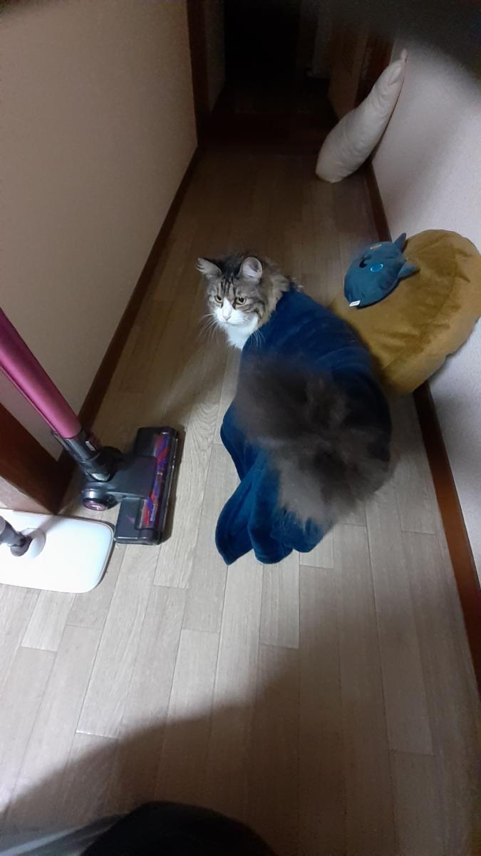 寝ているアレンにブランケットを掛けるとそれを連れて歩きます(ФωФ)