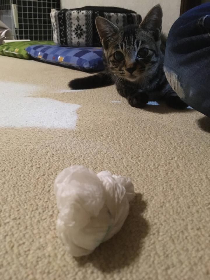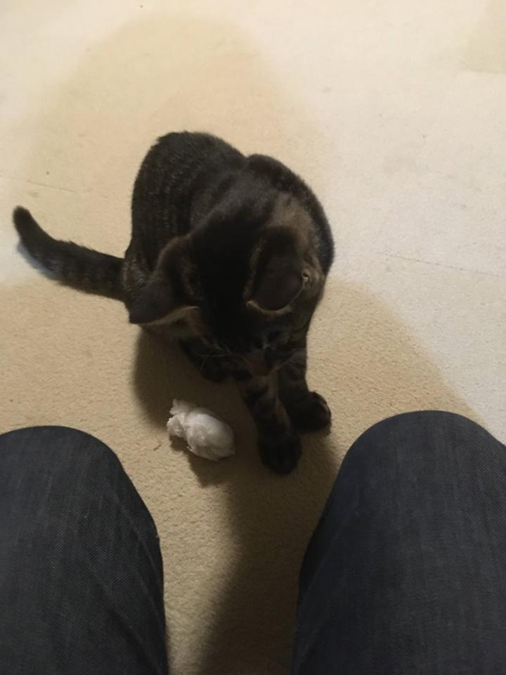 飼い猫歴32年、飼った猫4匹、初めてとってこいができる猫がっっっ!ここにっっっ!。