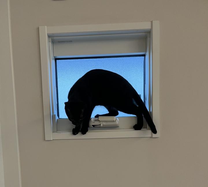 今日は朝から活発で5cm幅しかない窓のフレームに立っています。