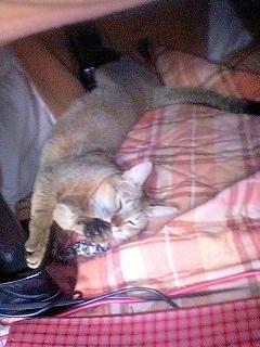 こたつで油断してるゆず・・・尻尾はまだ割れていません(笑)