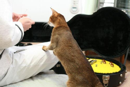 ある朝、弦を張り替えるため ギターを持ってリビングに