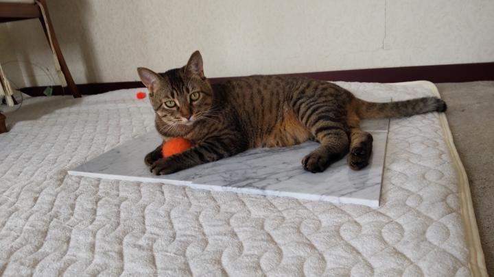 しかしチャッピーが結石による膀胱炎から療法食になり、トラビスのご飯を盗み食いするため、トラビスも一緒に療法食になりました。かかりつけ獣医さんに確認すると他の猫も食べて全く問題ないとの事と、オス猫に結石は大敵だから予防に丁度いいかなと思いました。今回は1日に10gずつ新しいフードを増やして、10日足らずで交換しましたが、吐かずにいけました。ここ半年くらい吐いた記憶はなく、数日前にトラビスの部屋に良かれと思って猫草を置いておいたら猫草を食べ過ぎて吐いただけです。猫草は家内散歩コースに置いて、食べ過ぎないようにしました。
