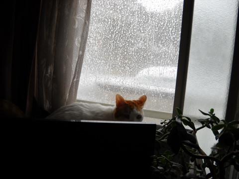 ちびも一晩で窓の外の景色が変わったのでちょっとビックリしているみたいです。