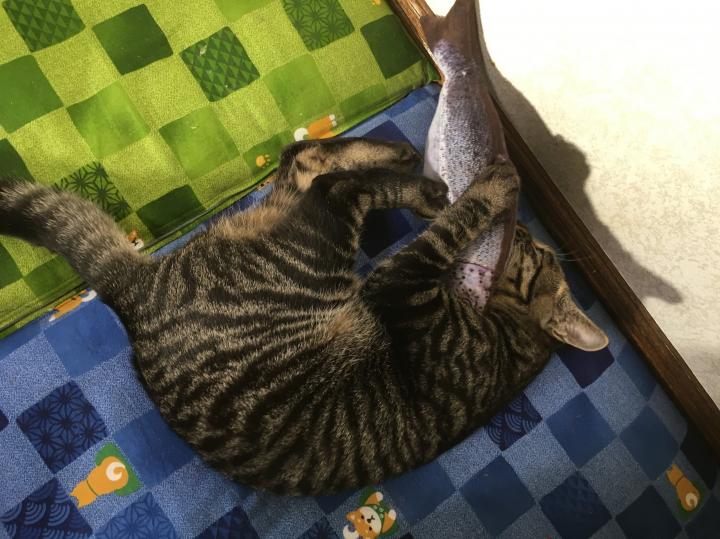 ↑買って5年間兄さんずに見向きもされなかった魚クッションがお気に入りw