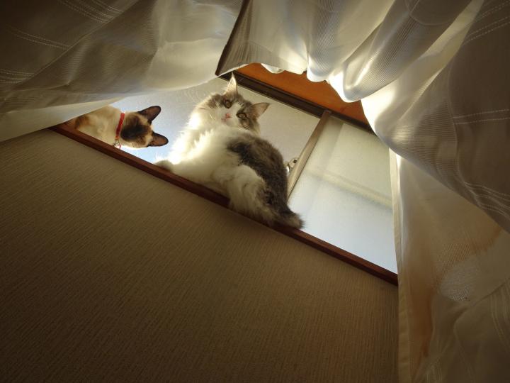 07:24 見下ろす 福ちゃん😼 と 麻花瑠🐱