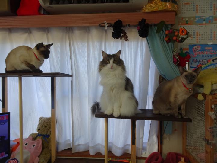 08:12 なんとなく集まった 福ちゃん😼 と 麻花瑠🐱 と ルビィ😻