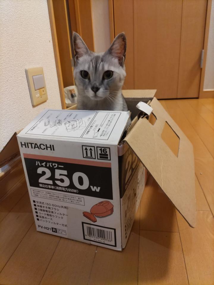 25年くらい使っていた掃除機を最近捨てたのですが、その段ボール箱を猫たちが気に入ってしまい、入っている様がかわい過ぎて捨てられません。