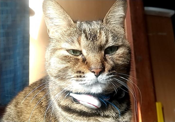今朝も起きた瞬間に、神々しいのが腹の上に居座ってました。