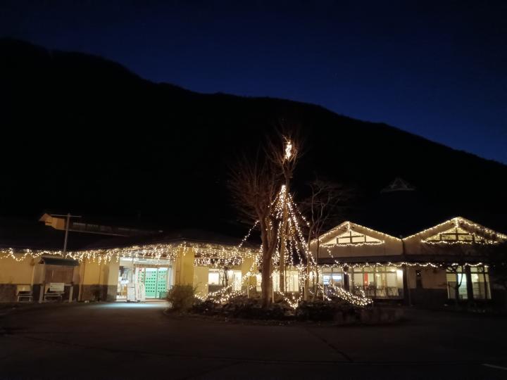 温泉でしっかり温まって、出た頃には暗くなっていました