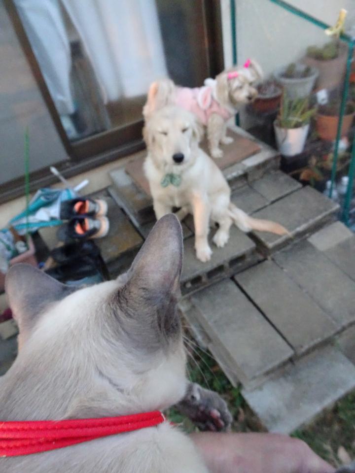 網戸越しに ルビィ😻も出たそうだったので、抱っこして連れてきました