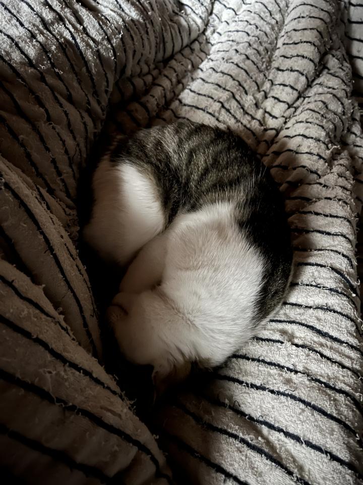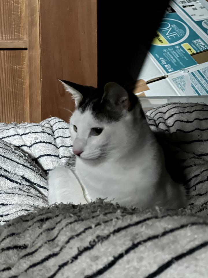 おかしゃんの布団のうえで寝るチャーリー