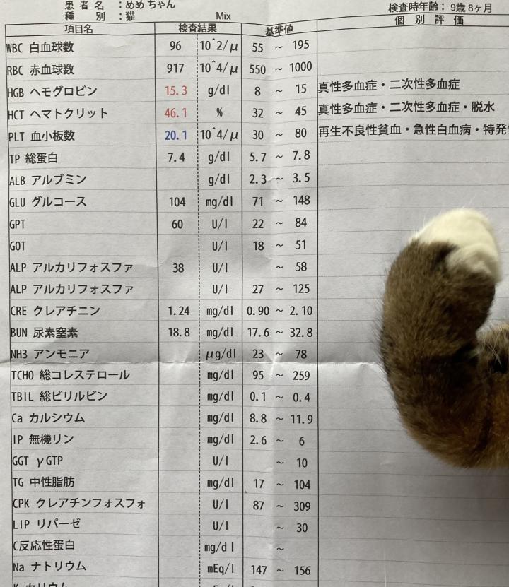 先週の血液検査の結果がコレなので