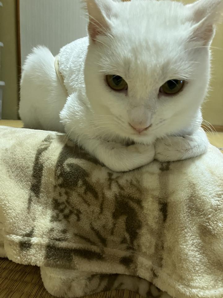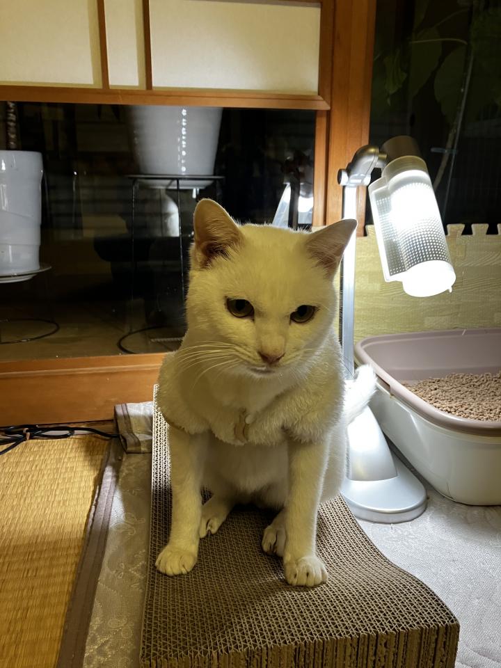 11/30に保護したばかりのオスの白猫ちゃんです。ガリガリでしたが、ここ数日でだいぶふっくらしてきました。