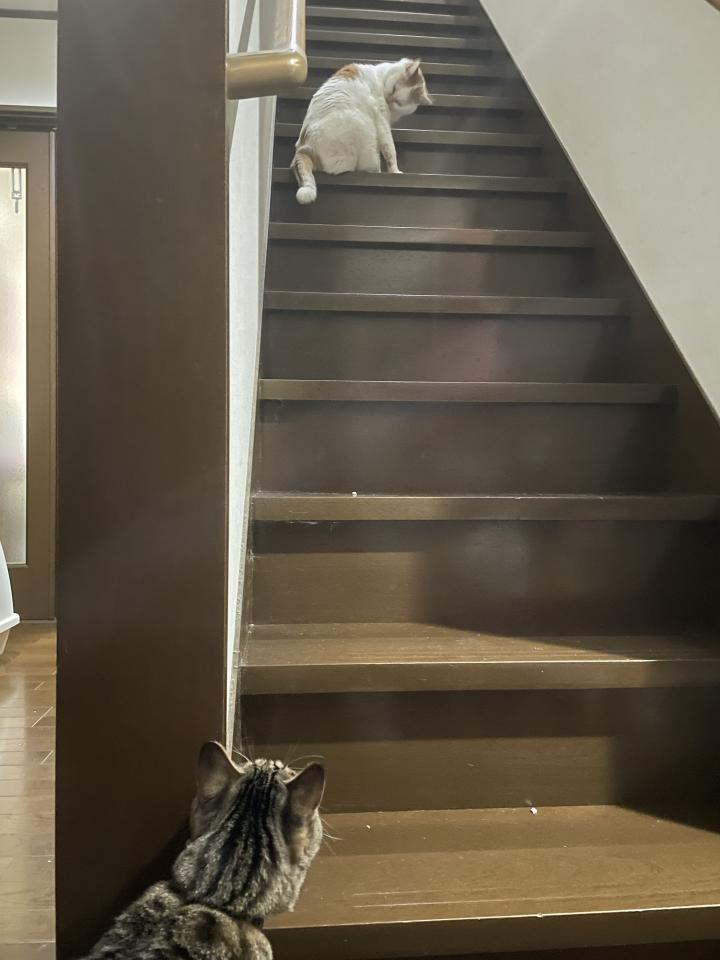 階段の上から「こっち来んな」の圧を感じて行けない。