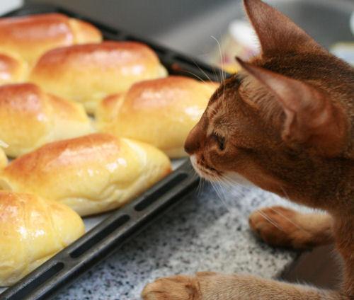 だいたい出来上がったパンを最初に食べるのはみ~ちょです