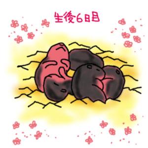 もう既に模様は出てきていますが、まだ毛は生えていなくて、目も耳も開いていません。