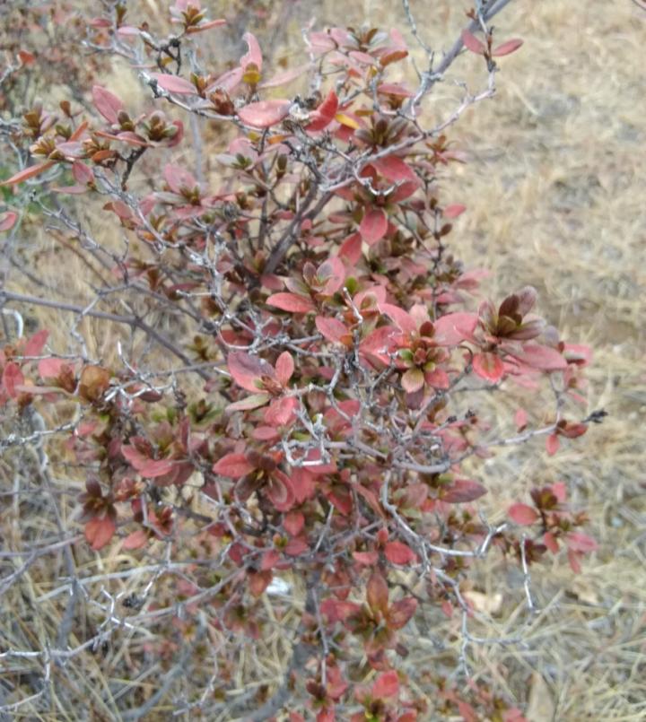 ツツジの仲間 色づいた葉っぱと枯れた枝。今朝、うちの辺りでは