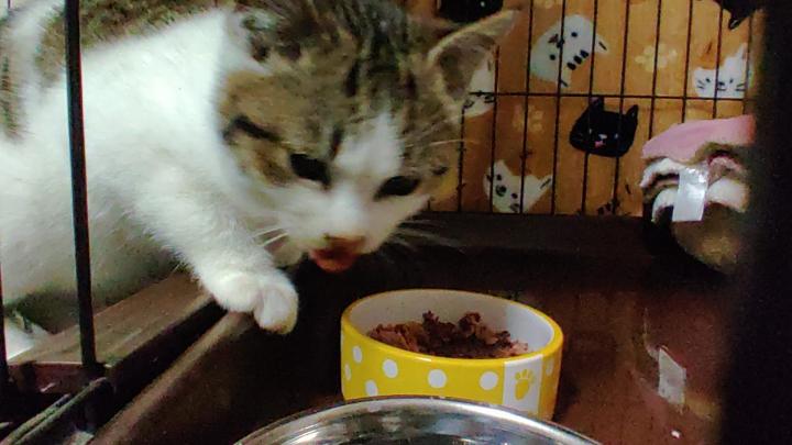 抱き上げると、すんなり抱っこ出来たのですが、見た目3ヶ月位ですが紙のように軽く、耳は怪我をして血が固まってました。