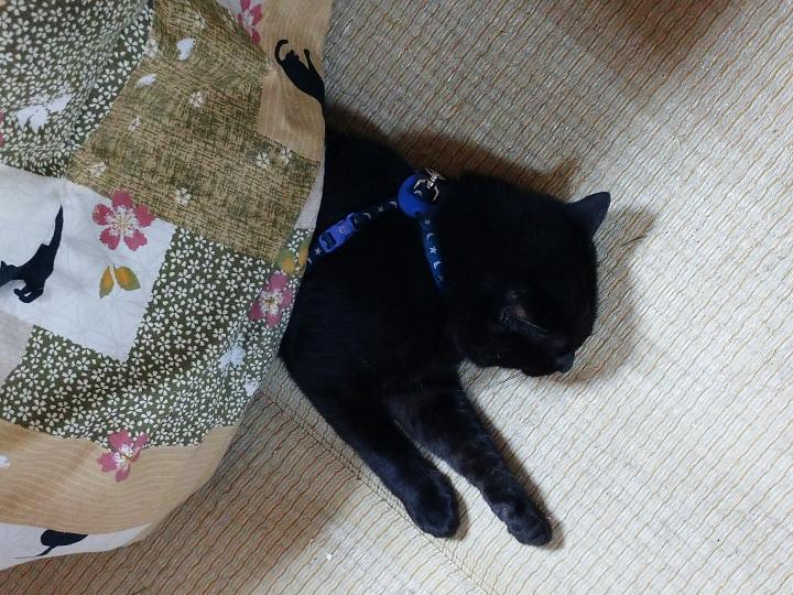しかしサンは毛が濃いので暑がりです。いつもこたつの横で伸びてます。それでも毎晩私の布団に来て私をもみもみしながら寝ます。もう13歳です。