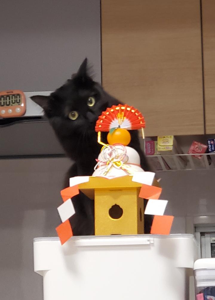 初めて見る鏡餅に興味津々