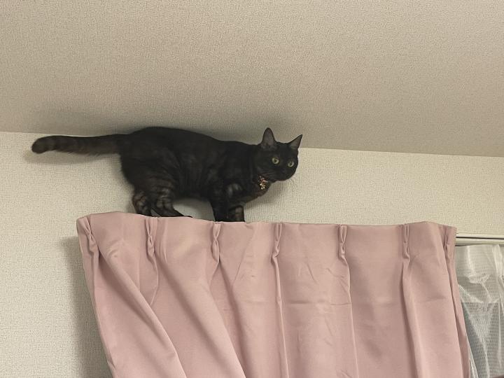 カーテンの上に猫がいると思わず二度見してしまう🤣