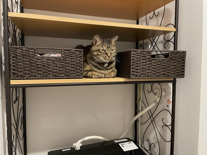 洗濯機ラックはまろんちゃんもよく乗ってる☺️