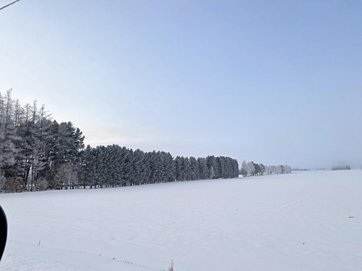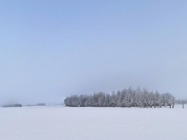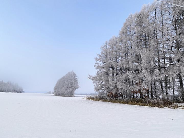 ちょっとした林になっている所も、針葉樹の深緑も白くなっているのが判る。