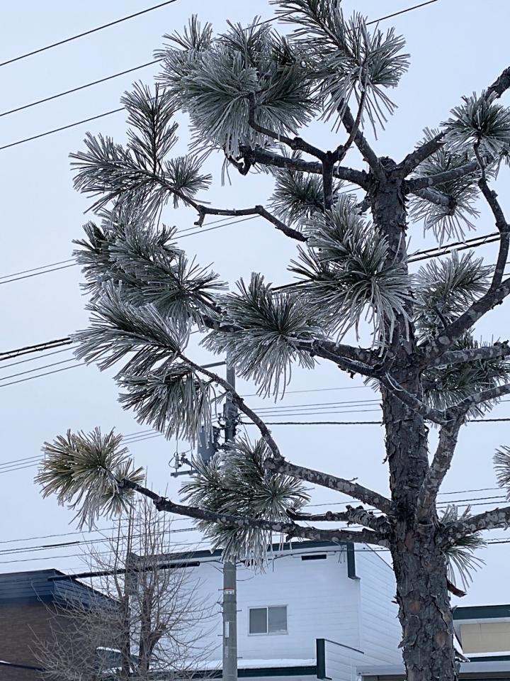 街の中でこんなにくっきり霧氷が見られるなんて、滅多にない事です。