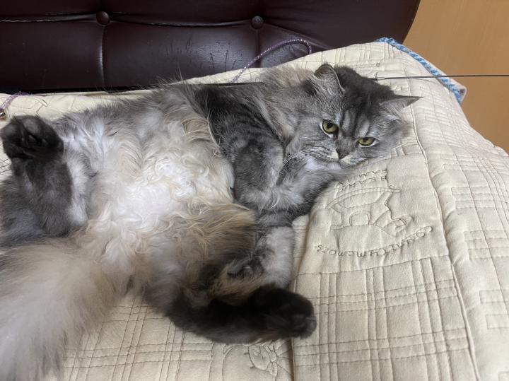 お腹を撫でて欲しいアピールするくせに、めちゃめちゃ無表情のメルにゃ🐈⬛