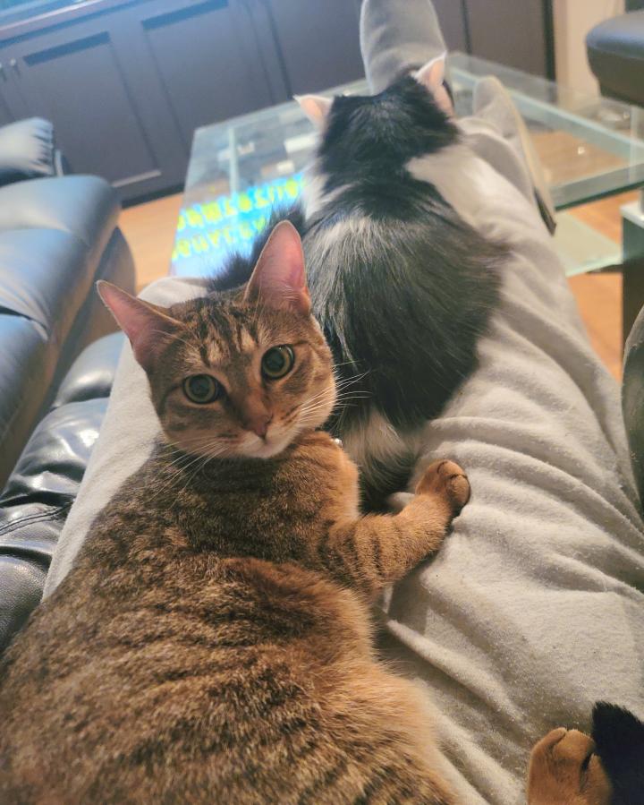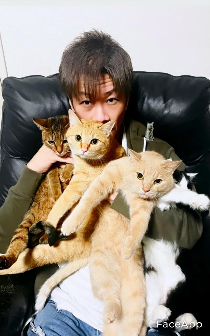 みゃーちゃんも左肩に乗せてます。