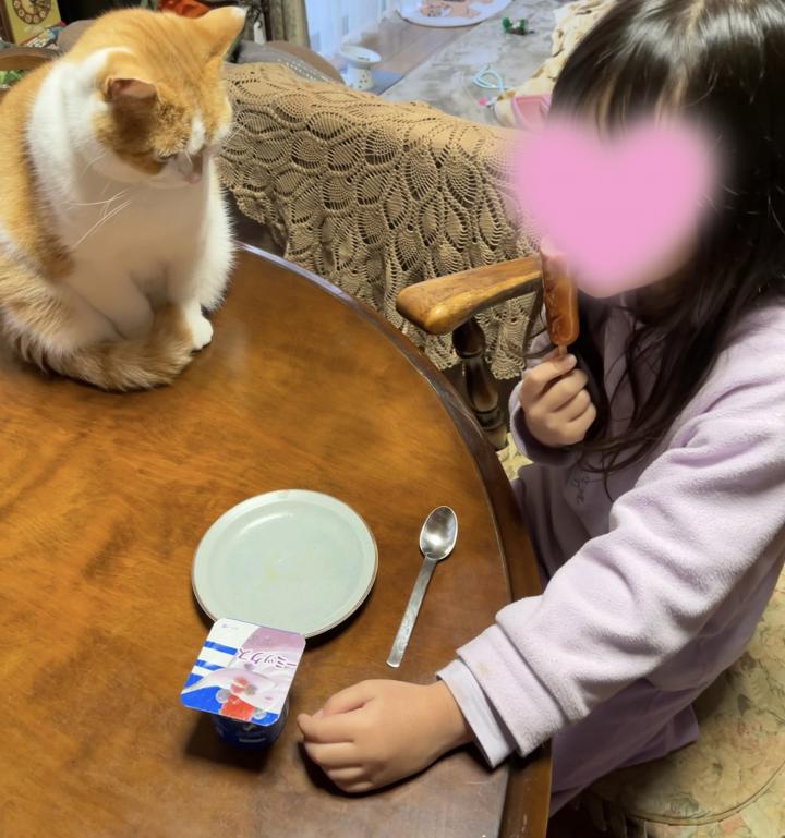 次女(6)の朝ごはん中を観察。